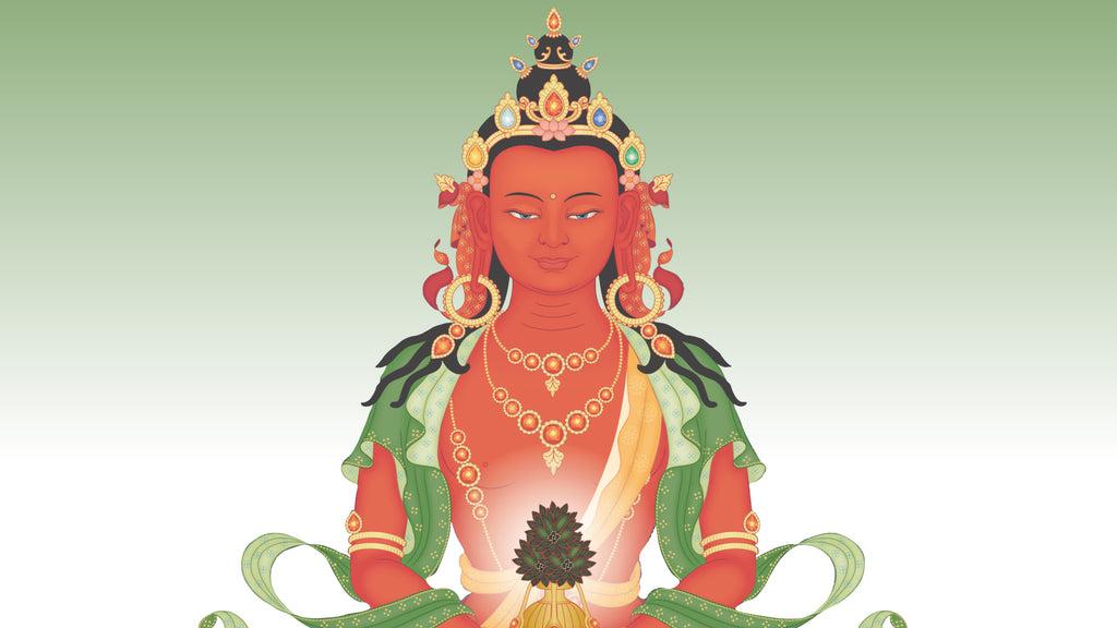 To engage successfully in spiritual practice we also need wisdom, as well as the merit or good fortune that gives our mind the strength to support the growth of inner realizations. Amitayus is the Buddha of long life, merit, and wisdom. By engaging in Amitayus practice, we can develop these qualities and eventually attain the deathless state of enlightenment. We can also use this practice to help remove obstacles that endanger the lives of others, especially our close friends and family.